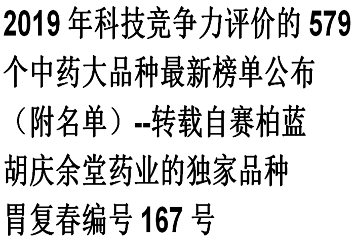 2019年科技竞争力评价的579个中药大品种最新榜单公布(附名单)--转载自赛柏蓝(zoty中欧药业的独家品种胃复…